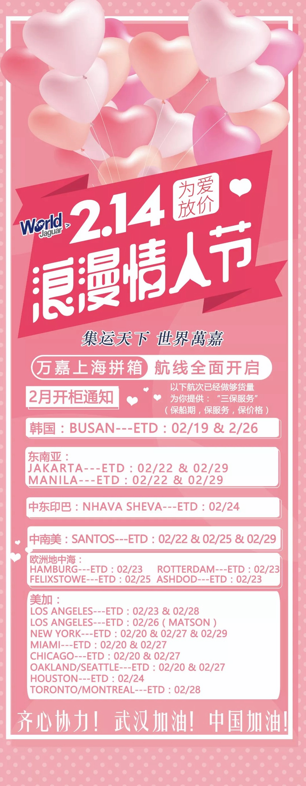 2月开柜通知:球速体育上海拼箱航线全面开启!